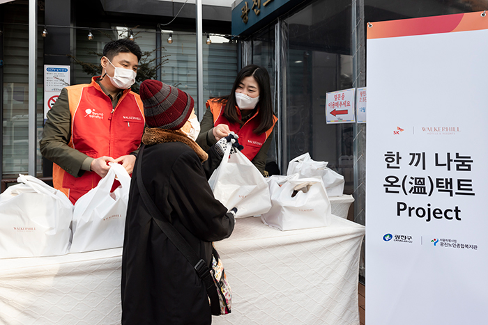 SK그룹의 ‘안전망(Safety Net)’ 구축 연장선장에서 추진하는 ‘한끼 나눔 온(溫)택트 프로젝트’에 워커힐이 동참해 광진구 내 지역 어르신과 온정이 담긴 도시락을 나눴다.