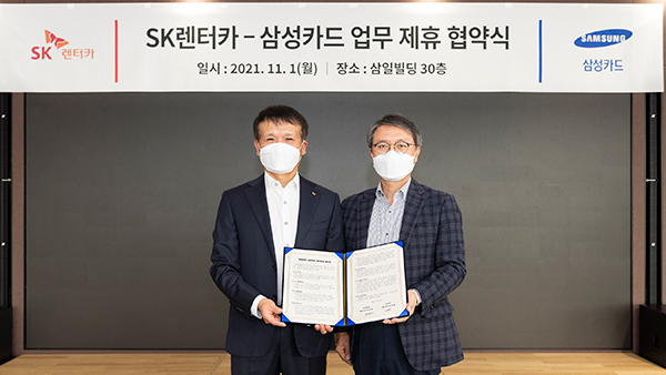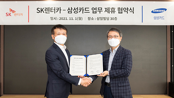 좌측부터 황일문 SK렌터카 대표이사, 김대환 삼성카드 대표이사
