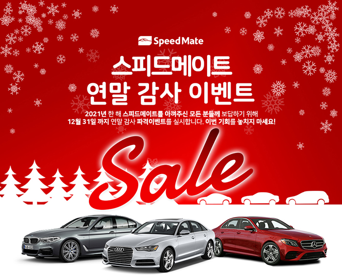 스피드메이트 관계자는 “연말을 맞아 올 한해 스피드메이트를 아껴주신 고객들에게 보답하기 위해 이번 이벤트를 마련했다”며 “많은 수입차 고객들이 보다 합리적인 가격으로 스피드메이트의 전문적인 서비스와 다양한 혜택을 누리시고 겨울철 차량 정비도 대비하시길 바란다”고 말했다.