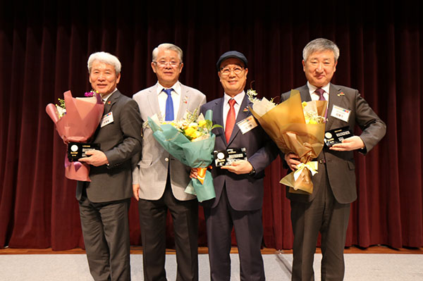 [사진설명2] 2018 아너 소사이어티 회원대표 회의에서 시상식을 마치고 기념 촬영을 하고 있다. (좌측부터) 전남대표 노동일, 최신원 총대표, 경북대표 이기원, 전북대표 김동수