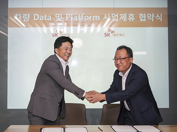 이날 오전 SK텔레콤 을지로 본사에서 열린 협약식에는 최태웅 SK네트웍스 Mobility부문장과 허일규 SK텔레콤 IoT/Data 사업부장이 참석했다.