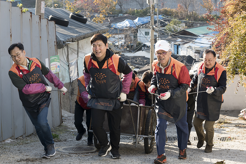 최신원 SK네트웍스 회장과 구성원들이 행복나눔 봉사활동을 통해 11월 매서워진 찬바람 속에 훈훈한 온기를 불어넣었다.
