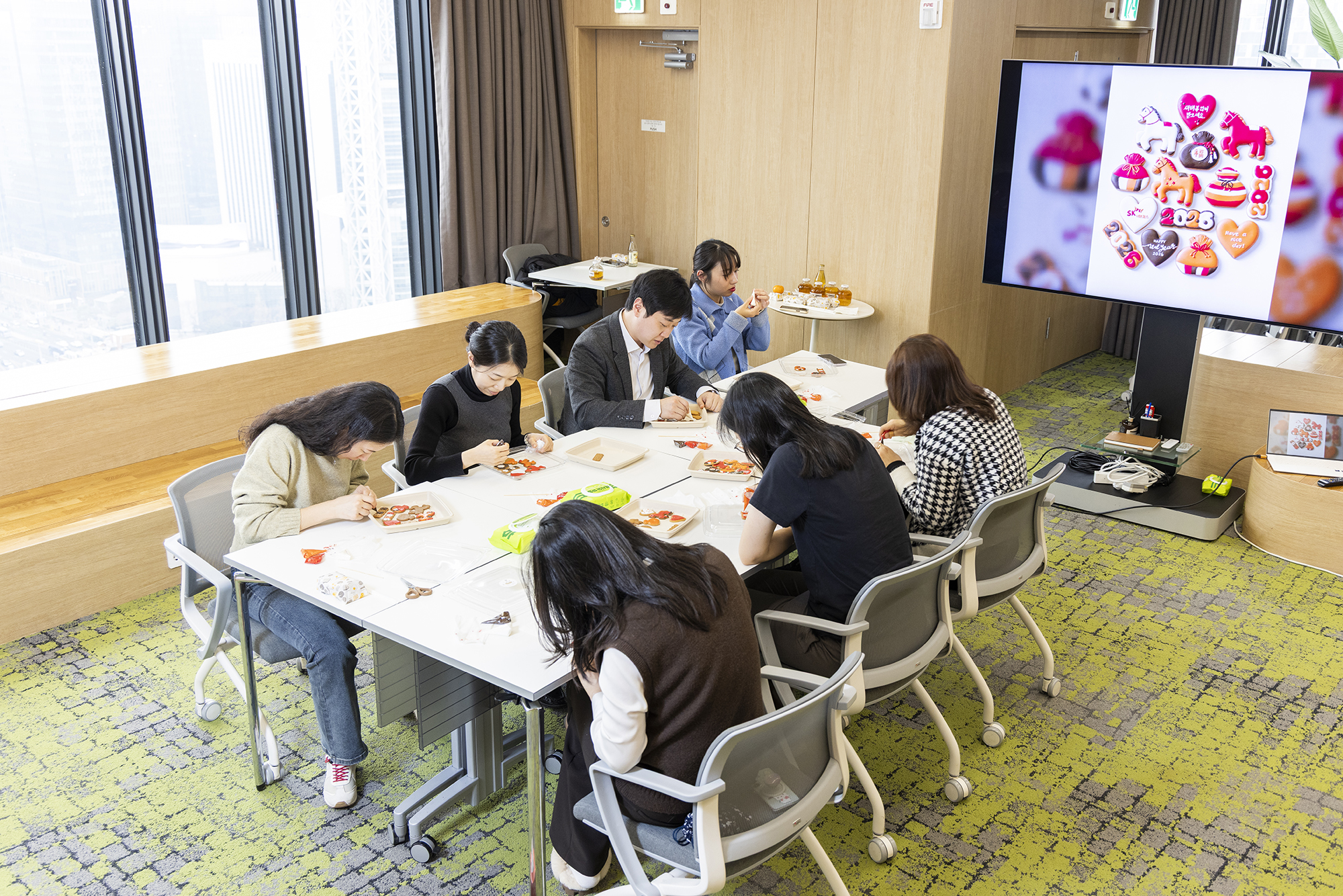 [사진2] 지난 2월 SK네트웍스 구성원들이 설날을 맞아 아이싱 쿠키 만들기 활동을 하고 있는 모습