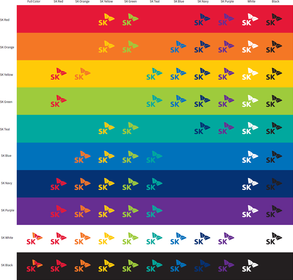 SK’s color are composed of its primary colors and secondary colors. SK Red and SK Orange are SK’s representative colors. These guidelines must be observed because the consistent application of SK’s colors ensure the proper representation of SK’s image.