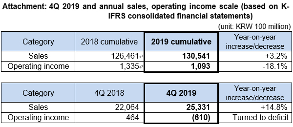 SK networks announced on February 6th, 2020 through its provisional performance disclosure that it recorded annual sales of KRW 13.54 trillion (3.2% year-on-year increase) and operating income of KRW 109.3 billion (18.1% year-on-year decrease) in 2019 based on consolidated financial statements.