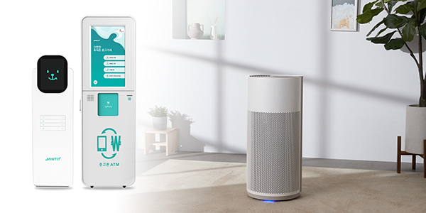 [Photo] Eco-friendly products and services named by SK networks as key pillars of sustainable management: MINTIT ATM, ICT recycling service (top left); All-Clean air purifier of SK Magic adopting green materials (top right)