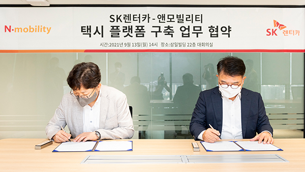 SK렌터카(대표이사 : 황일문)는 13일 서울 종로구 SK렌터카 본사(서울 종로구 소재)에서 ‘나비콜(NaviCall)’을 운영하는 앤모빌리티와 ‘택시 플랫폼 구축 업무 협약’을 맺었다고 14일 밝혔다. 이날 협약식에는 김현수 SK렌터카 BM혁신본부장, 서동성 앤모빌리티 대표이사 등 양사 관계자가 함께했다.