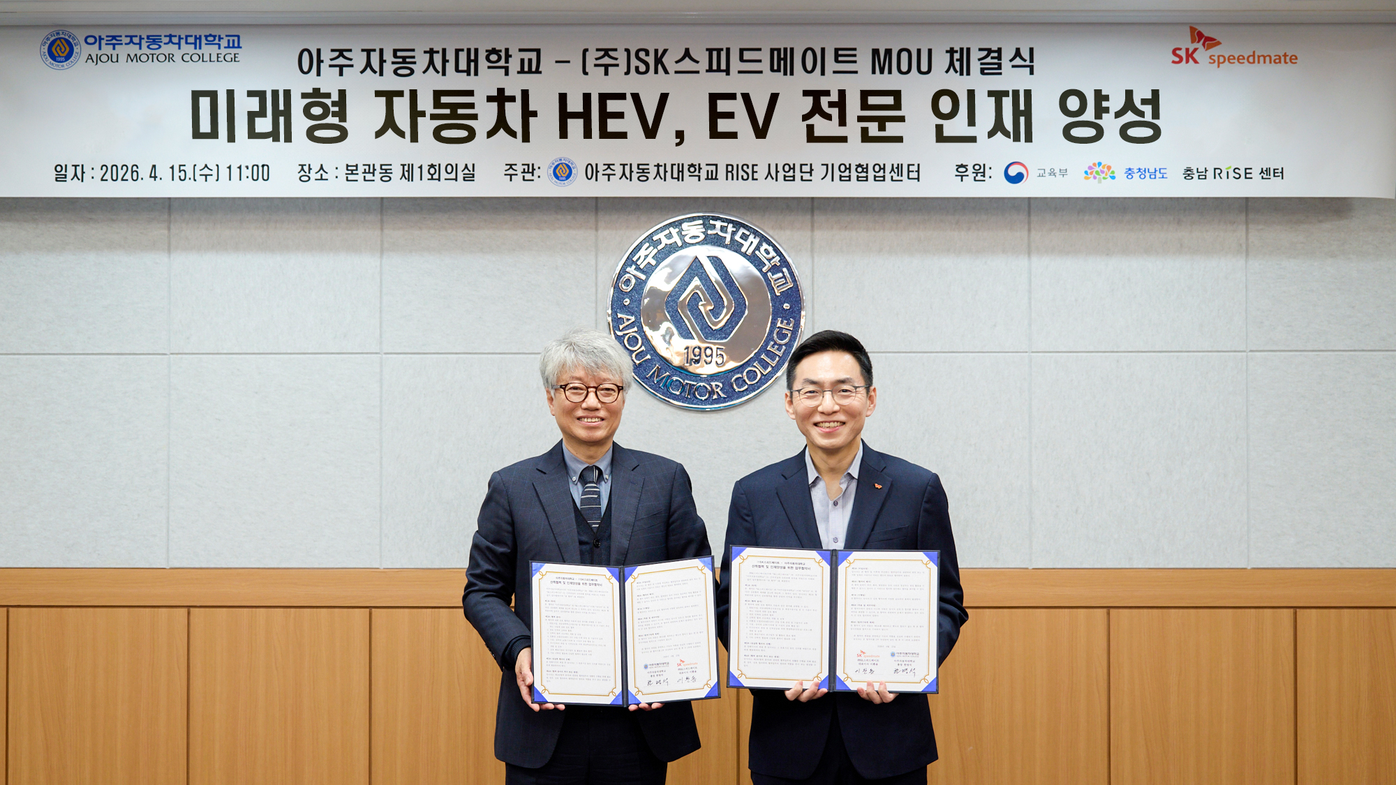 SK스피드메이트, 아주자동차대학교와 산학협력 체결··· 친환경차 정비 인재 양성 본격화